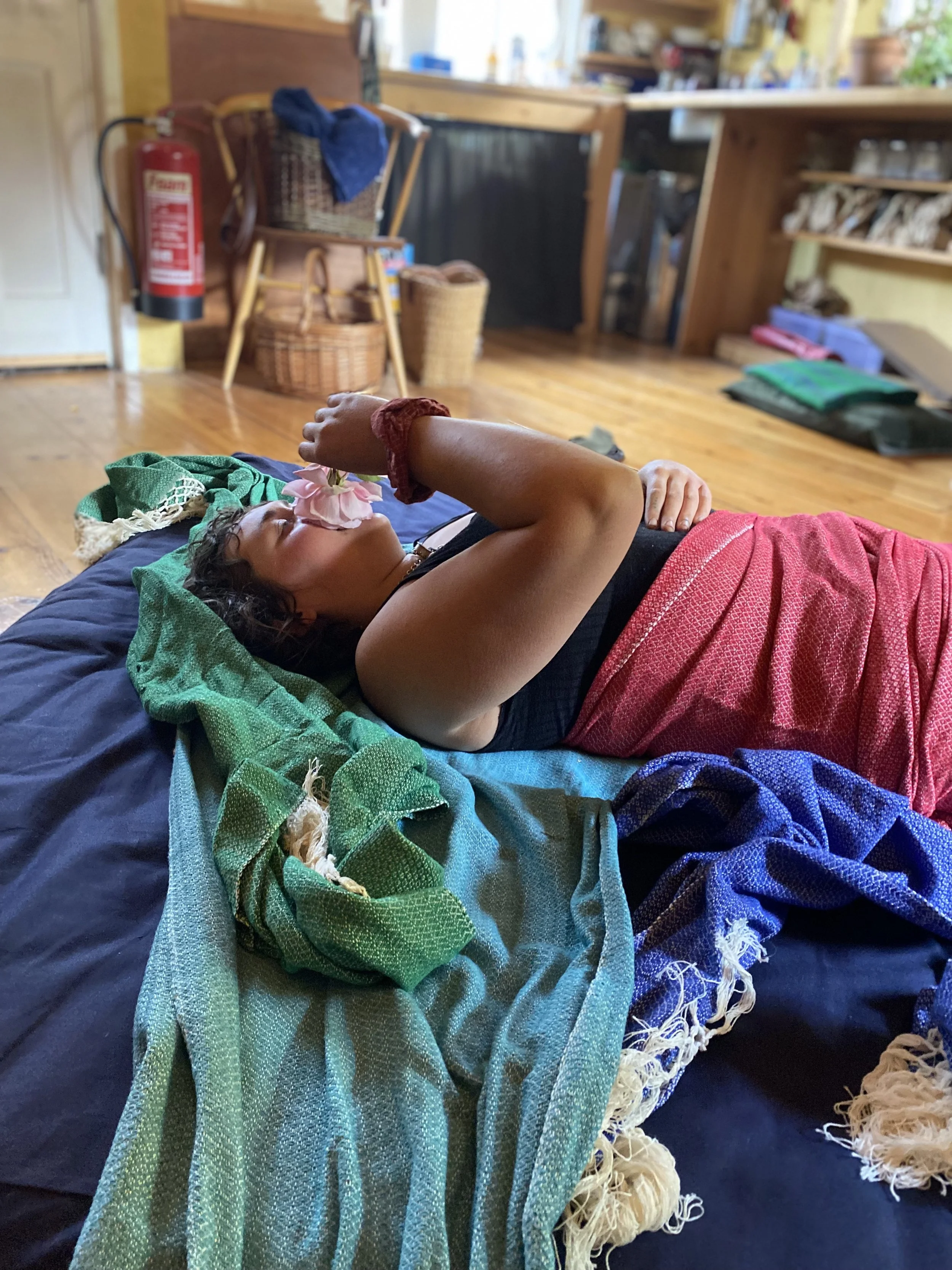 During the session, the body is gently rocked, held and wrapped with rebozos (woven shawls), creating a sense of containment and support after experiences that open or scattered your energy. This ritual offers a space to pause, to be witnessed, and to integrate what has been lived.